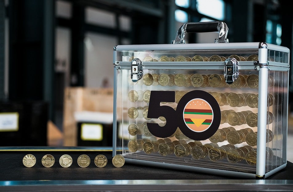 McDonald's dio a conocer que estarán circulando más de 6,2 millones de monedas alrededor del mundo que exhibirán cinco motivos conmemorativos, uno por cada década de existencia de la hamburguesa.