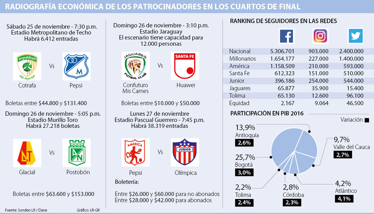 Los estadios de Techo, Jaraguay, Murillo Toro y Pascual Guerrero no solo recibirán a los ocho equipos que clasificaron este semestre para disputar la Liga Águila, sino que también serán la vitrina ideal para todas las compañías que están detrás de su éxito.