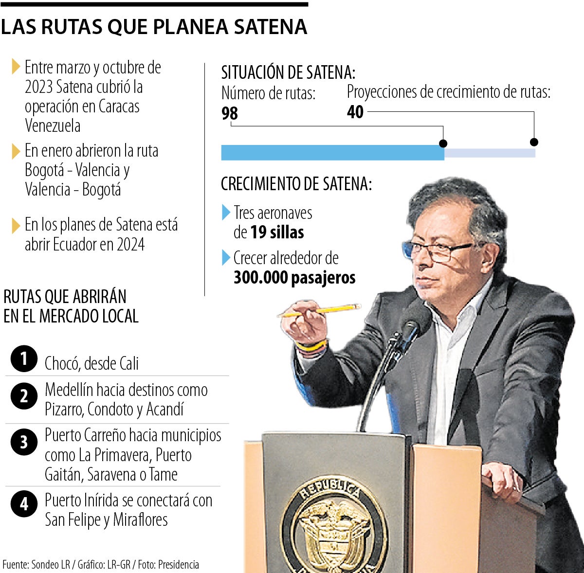 Satena planea abrir rutas hacia Ecuador pese a señalamientos de Petro