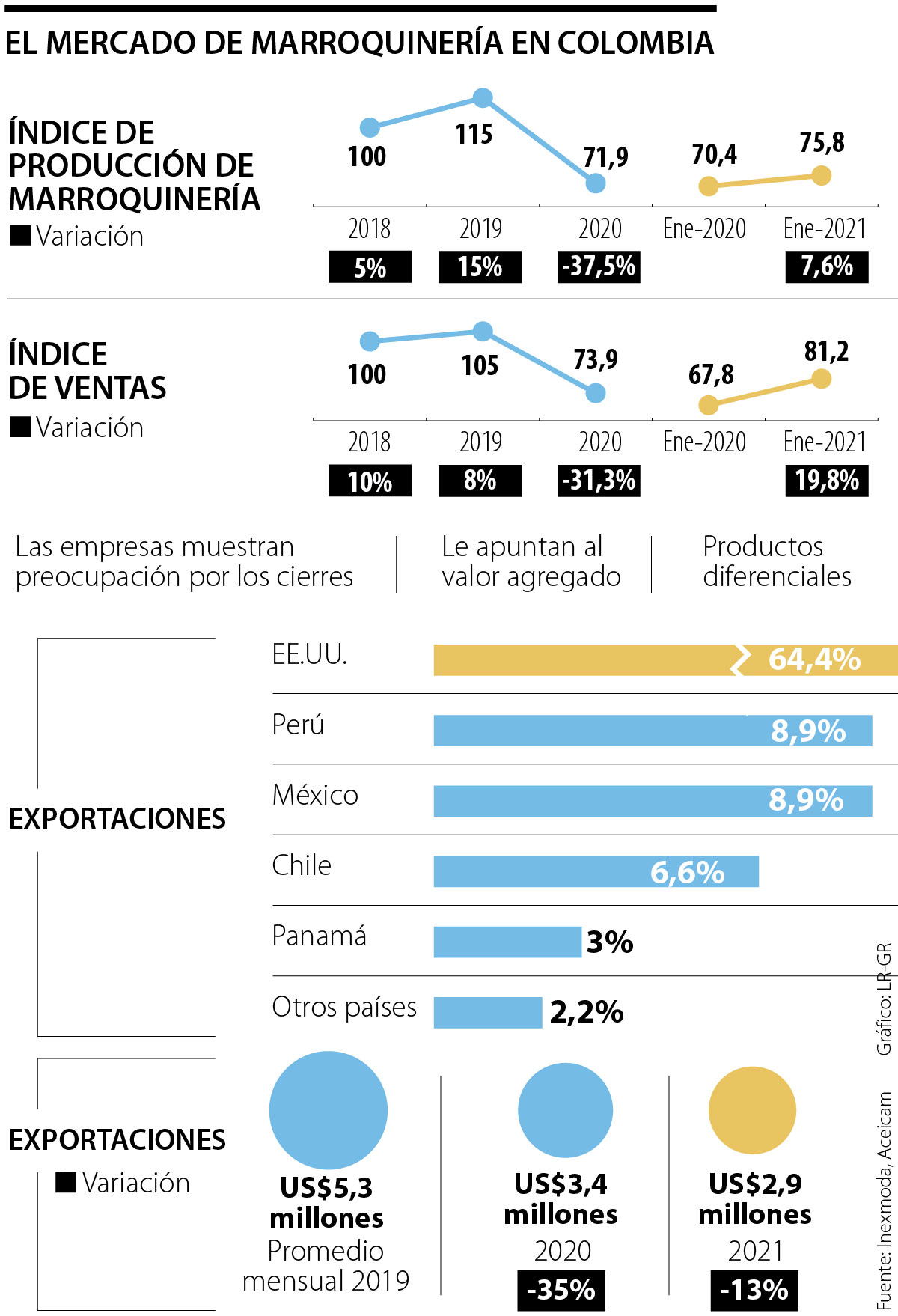“Se acabó la exportación. La marroquinería es algo que se hace bien o no se hace, los materiales son caros y si no tiene diseño y diferenciación no se vende”, concluyó Mario Hernández, quien al igual que los otros empresarios mostró su preocupación frente a los cierres de abril, que no solo han frenado la compra local, sino también la llegada de turistas que suelen ser clientes estrella de esta industria.