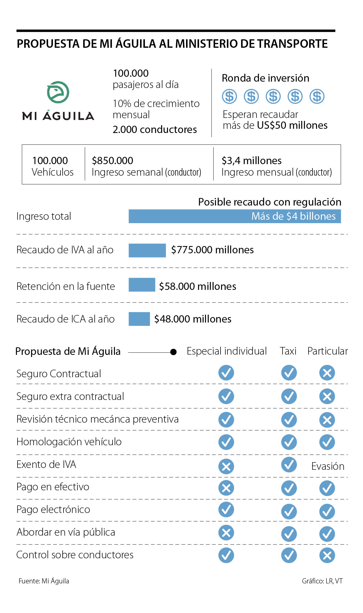 Cabe recordar que en un principio Mi Águila fue una aplicación de carro compartido, que conectaba estudiantes, principalmente, que iban al mismo destino o cerca para que pudieran usar un solo vehículo, pero el Ministerio les envió un requerimiento, porque eso era ilegal, “por lo que usamos la tecnología para tener una operación legal que actualmente se enfoca en empresas”, explicó Ocampo.