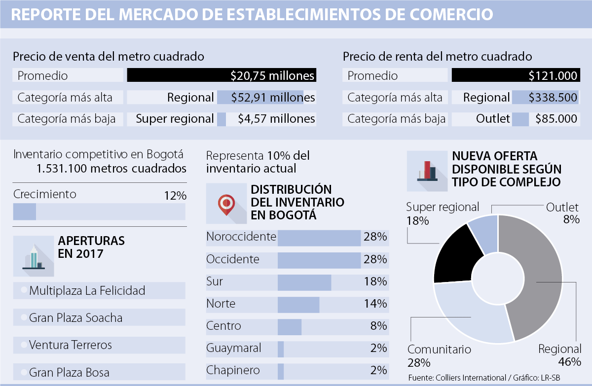 Caso contrario se dio con la única categoría de centros comerciales de mayor tamaño, los super regionales, que vieron un costo de venta cercano a $4,57 millones por metro cuadrado, a causa de los espacios vacíos que dejó el éxodo de marcas internacionales en este tipo de establecimiento.