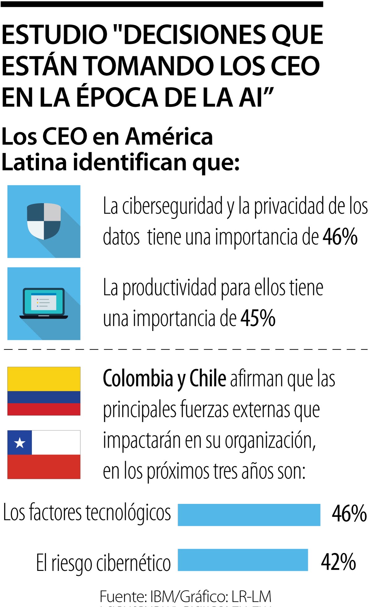 Un nuevo informe global de IBM (Institute for Business Value), titulado “Decisiones que están tomando los CEO en la época de la AI”, mostró que 47% de los directivos de América Latina identifican la modernización tecnológica como su principal prioridad de negocio. Por eso, entre los hallazgos también está que la segunda preocupación es la ciberseguridad y la privacidad de los datos con 46%, ya luego aparecen otras como la productividad, con una participación de 45%.