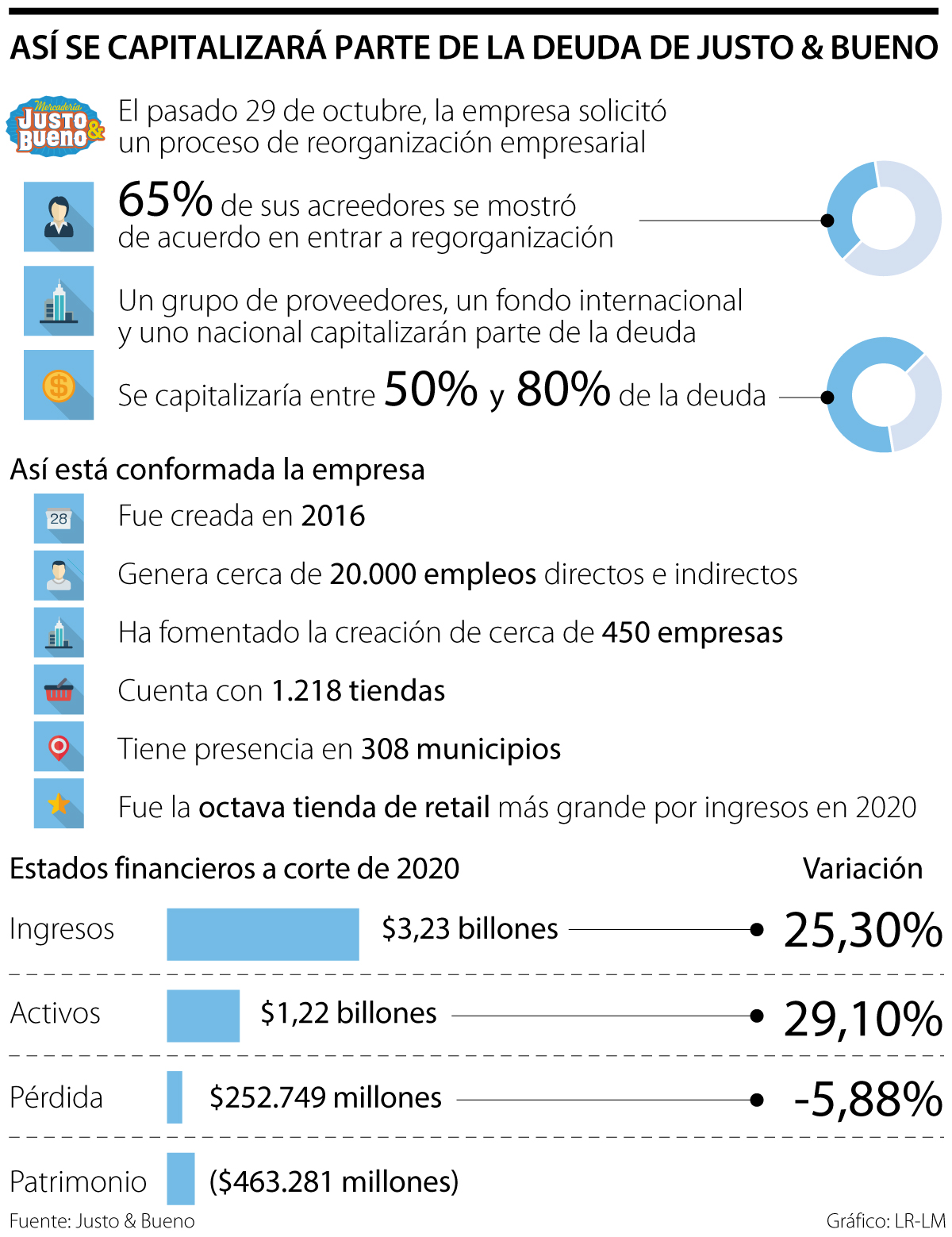 Es importante recordar que Justo & Bueno ya había conseguido el respaldo de 65% de sus proveedores y aliados para su reorganización, y recientemente atrajo a un financiador internacional (VR Capital Group) para recuperar su operación.