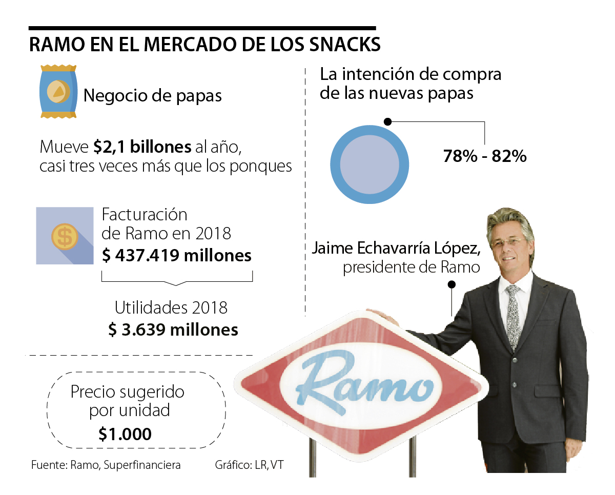 De un tiempo para acá, Ramo viene ampliando su portafolio de productos y ha incursionado en nuevos segmentos de mercado. Por ejemplo, la compañía lanzó la línea Equilibrio el 7 de febrero de este año y ayer dio a conocer que crecerá en la categoría de snacks con el lanzamiento de Papas Ramo.