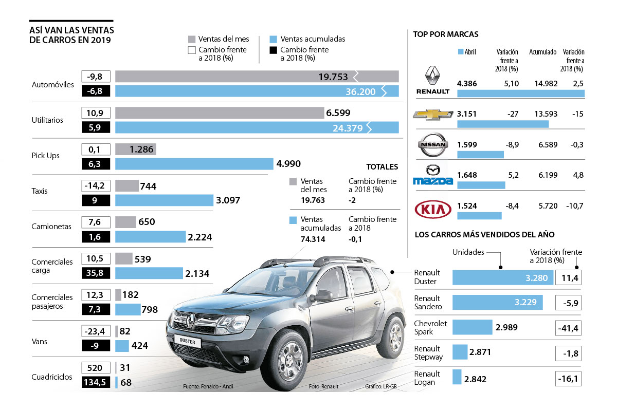 Entre las líneas que se destacan en el informe de la francesa está el alza de 11,4% que tuvieron las ventas de la Renault Duster, que también se quedó con el liderato del carro más vendido en el acumulado del año. A este le sigue la línea Sandero, que a pesar de lograr ventas por 3.229 unidades; solo 51 menos que la Duster, cayó 5,9% frente a la comercialización que había logrado en el acumulado a abril del año pasado.