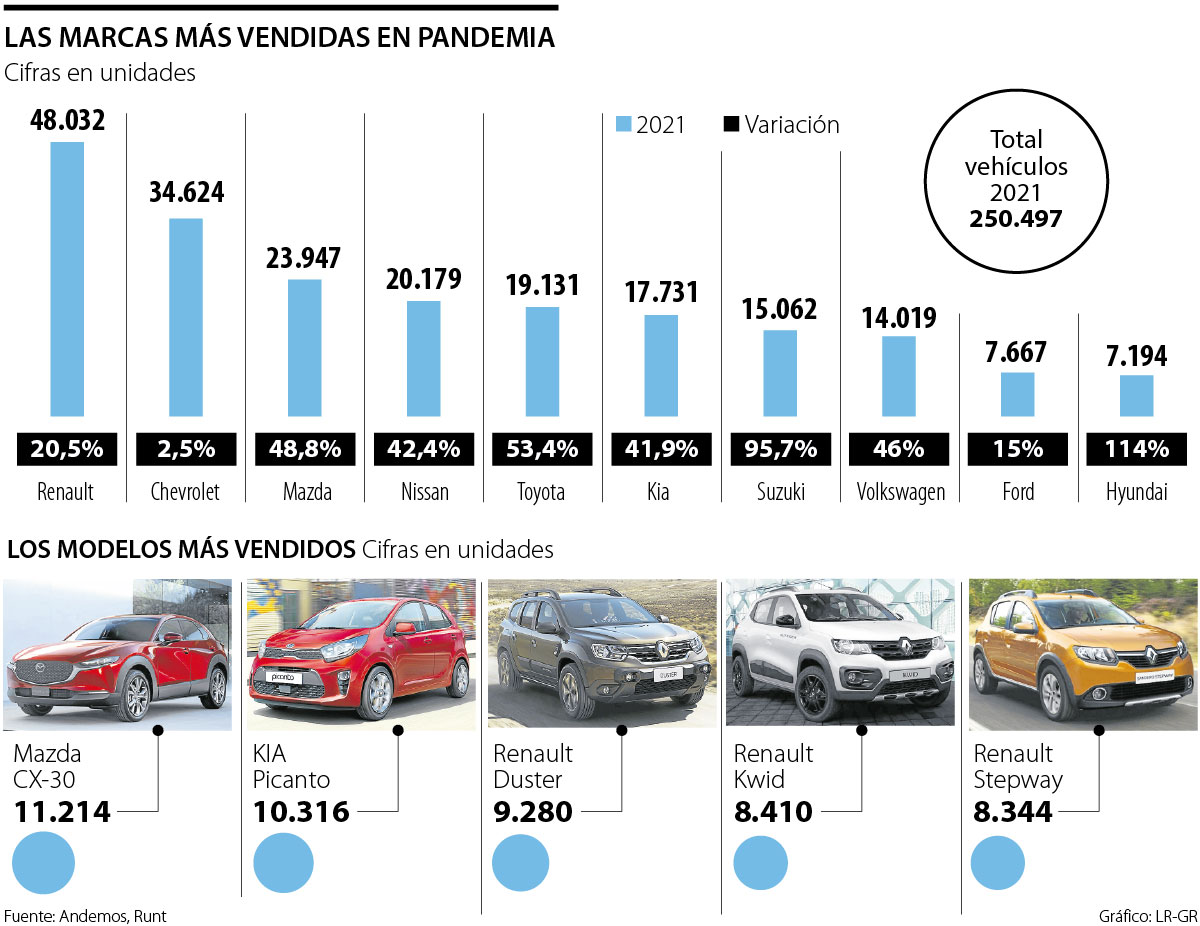 La marca francesa, junto con Chevrolet y Mazda, se llevaron 42,55% de las ventas. Mazda CX-30 fue el más vendido