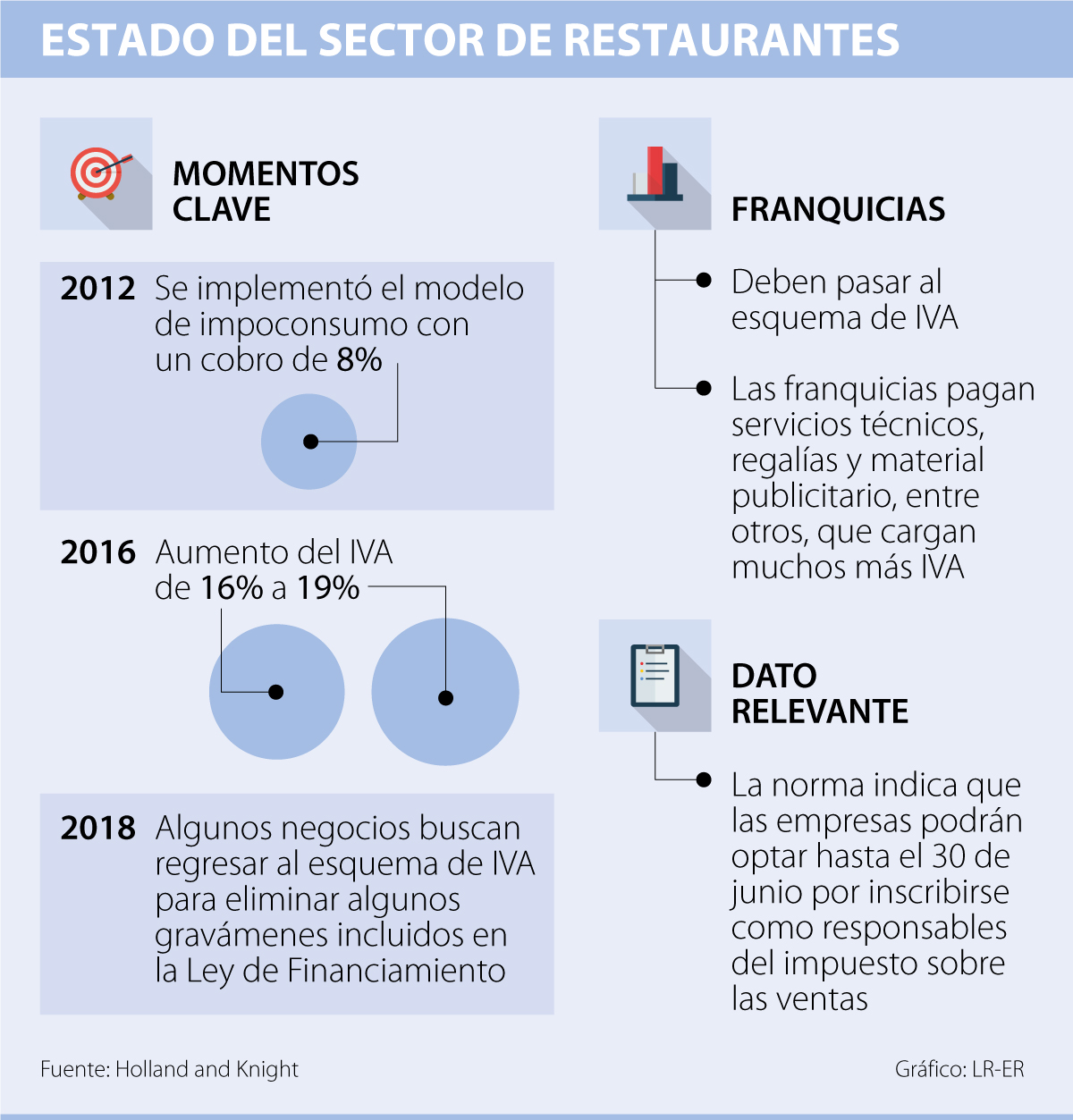 El sector de restaurantes en Colombia enfrenta una dualidad que podría definir su futuro. Al menos así lo resaltó la firma de abogados Holland and Knight ante el escenario que enfrentan las empresas con el impuesto al consumo, que llega a 8%, o el impuesto a las ventas, que asciende a 19%.