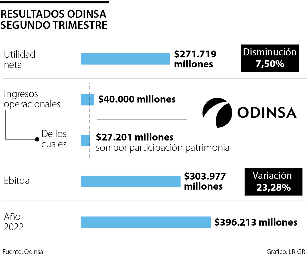 En el segundo trimestre del año la utilidad neta consolidada de Odinsa llegó a $271.719 millones, disminuyendo 7,5% con respecto al mismo periodo del año anterior. Los ingresos operacionales de la organización fueron por $40.000 millones, de los cuales $27.201 millones son por participación patrimonial.