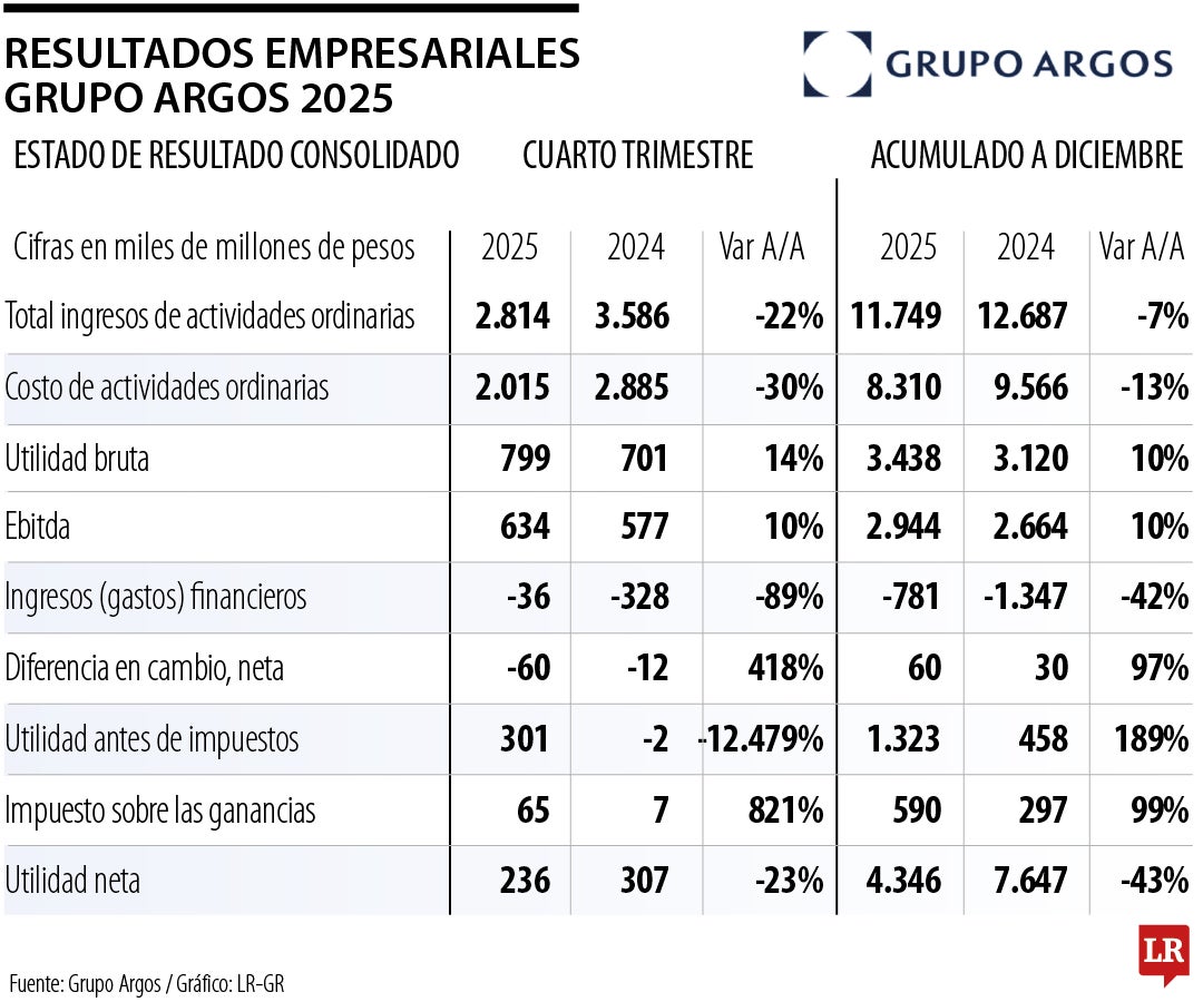 Resultados empresariales Grupo Argos 2025.