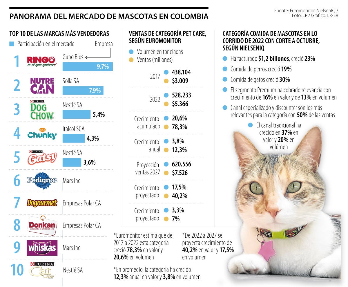 Las mascotas han empezado a jugar un rol cada vez más relevante dentro de las familias colombianas, lo que tiene un efecto de inversión en productos de categorías especializadas para los compañeros de cuatro patas en el hogar. De hecho, solo en Bogotá, 40,2% de los hogares tienen mascota, según el Dane. De acuerdo con cifras de NielsenIQ, solamente en 2022 la categoría de comida para mascotas ya ha facturado $1,2 billones, lo que representa un crecimiento de 23% con respecto al año anterior.
