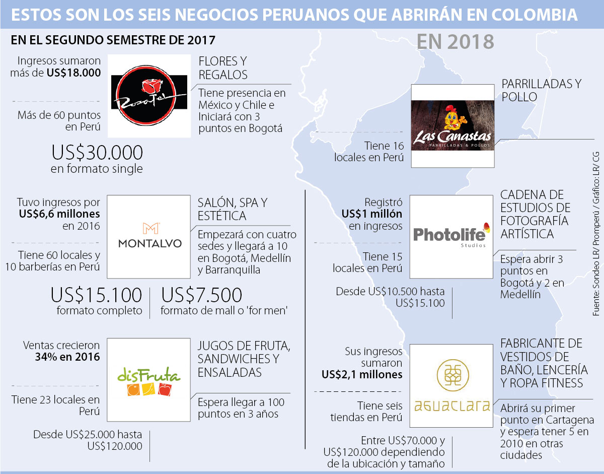 Cerca de 600 reuniones tuvieron que hacer las nueve franquicias que representaron a Perú como país invitado durante la Feria de Negocios y Franquicias (Fanyf) para que seis de ellas se animaran a iniciar operación en Colombia entre este segundo semestre y el transcurso del próximo año.