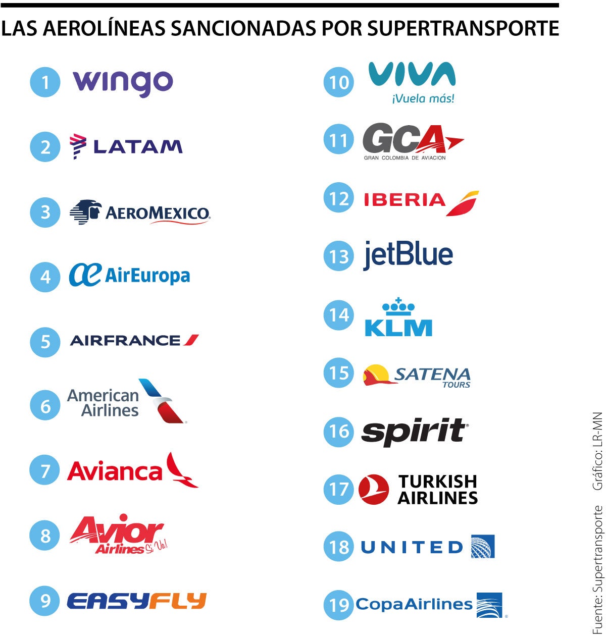 Las cláusulas abusivas de las aerolíneas para restringir derechos de los pasajeros cayeron en la mira de las autoridades. La Superintendencia de Transporte anunció una sanción por $1.478 millones a 19 aerolíneas. Entre ellas están Avianca, Viva Air, Wingo, Easyfly y Latam; también, Aeroméxico, Iberia, Satena, American Airlines, Copa, Air Europa, Air France, Avior Airlines, GCA, Jetblue Airways, KLM, Spirit, Turkish Airlines y United Airlines.