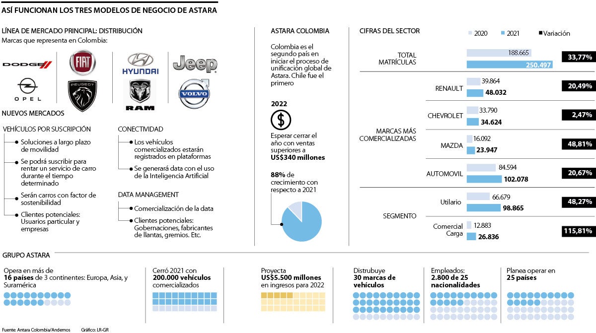Este año, por ejemplo, Astara Colombia planea cerrar con ventas superiores a US$340 millones, con un crecimiento de 88% con respecto a 2021, explicado en gran parte por su nueva apuesta. Así mismo, la compañía espera comercializar más de 17.000 vehículos dentro de las 26 ciudades del país en las cuales tiene presencia. Esto, teniendo en cuenta que es un sector de crecimiento en el país.