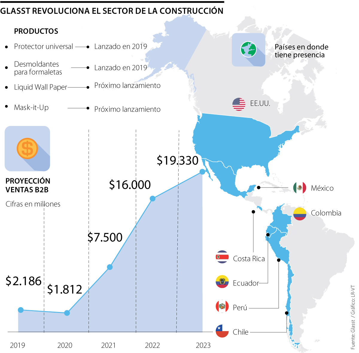 Glasst es un emprendimiento colombiano que nació en 2017 y fue fundado por Juan Camilo Botero, que en un inicio se enfocó en la prestación de servicios para la construcción. “Nosotros desarrollamos una tecnología para quitarle los rayones a los vidrios de las constructoras”, recuerda Botero, quien poco a poco empezó a desarrollar y patentar productos biodegradables para reemplazar los convencionales usados en procesos de la industria, que este año atrajo a dos grandes de la industria: Conconcreto y Pintuco y ahora prevé ventas por $7.500 millones.