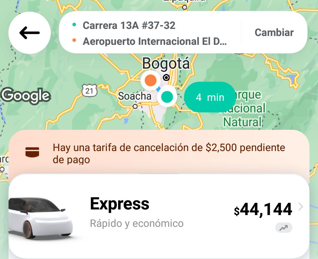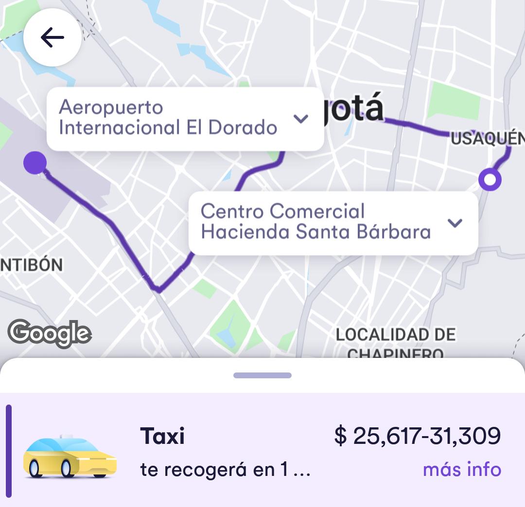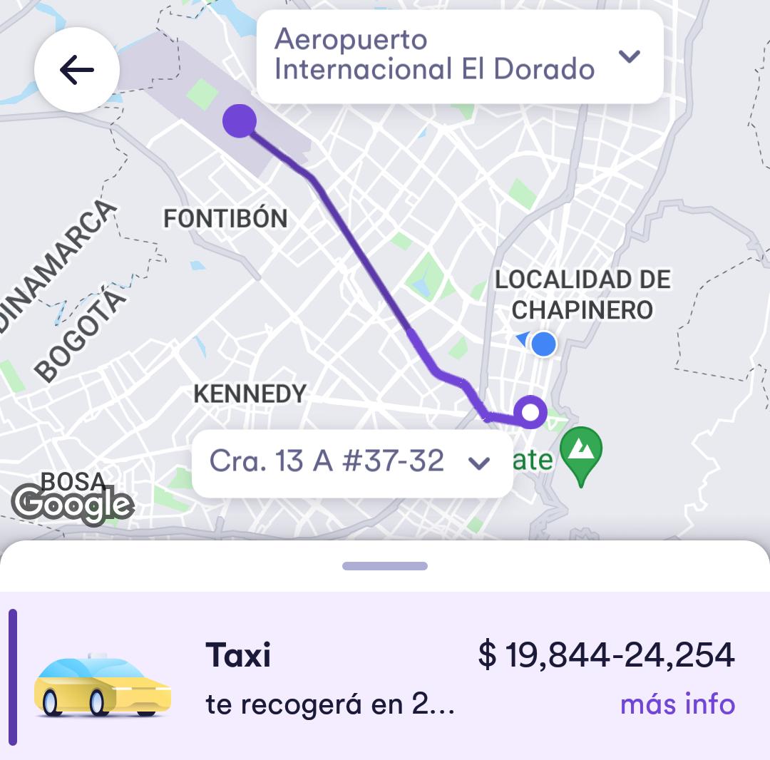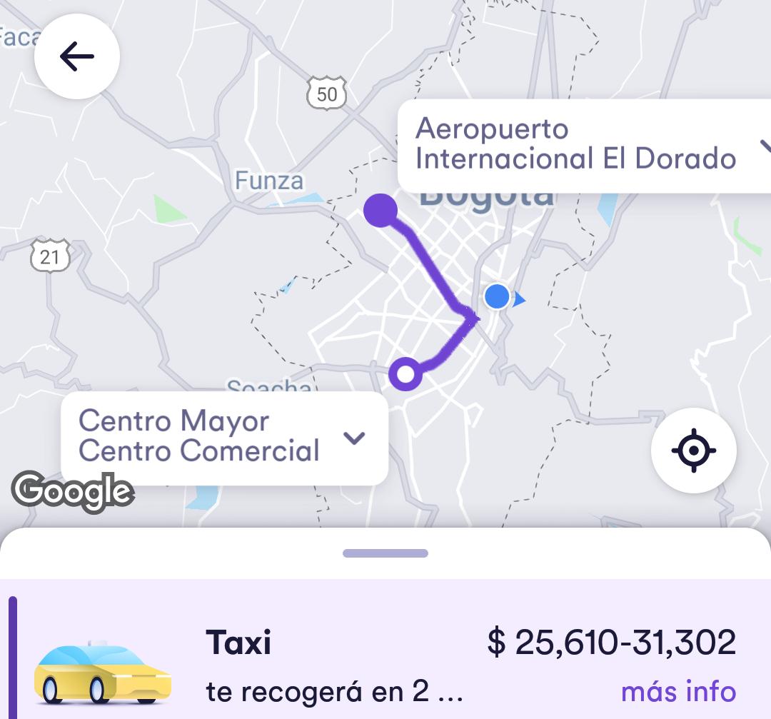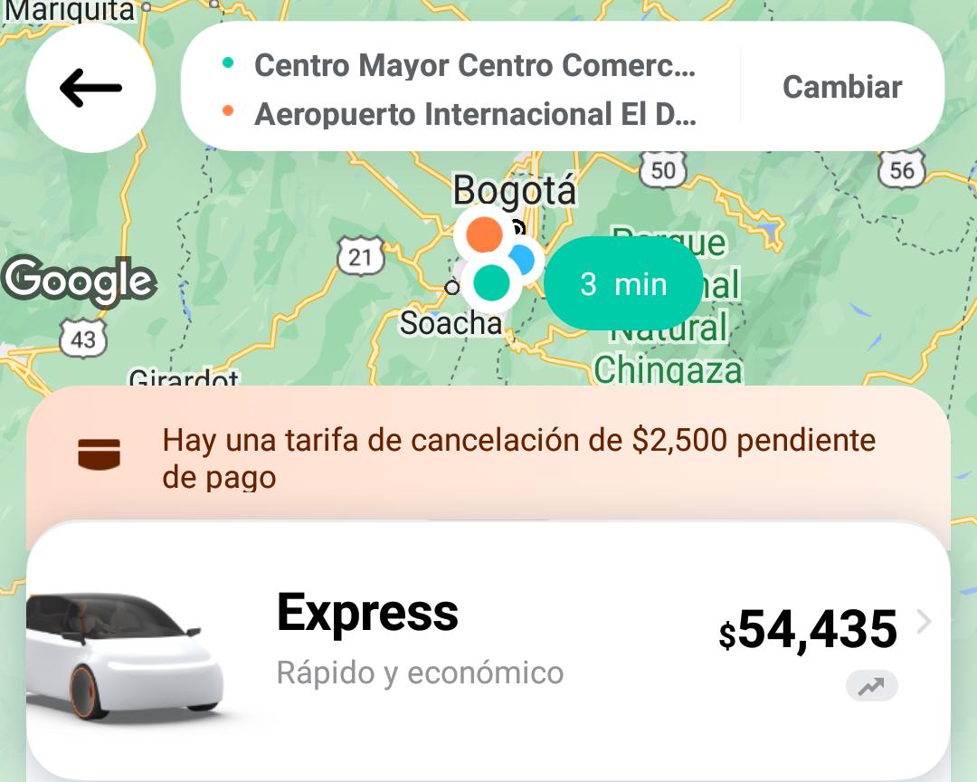 Un trayecto entre el Diario La República y el Aeropuerto El Dorado hoy costó $55.180 en Uber, mientras que ayer valía $21.500