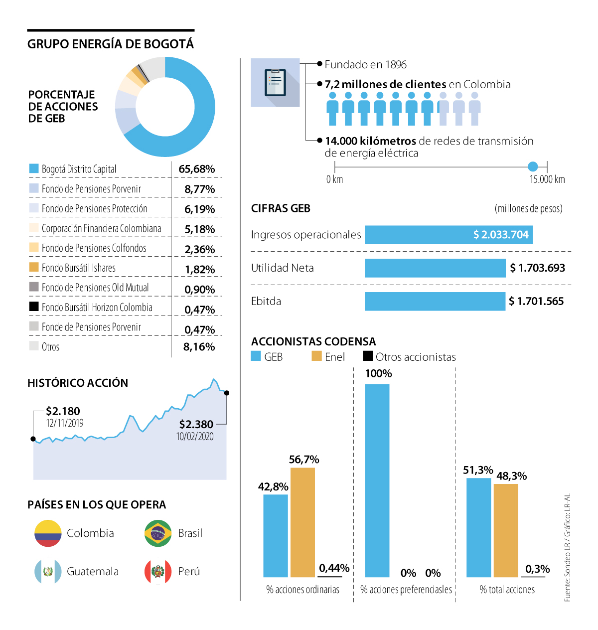 Codensa es la segunda compañía de distribución y comercialización de electricidad más grande de Colombia, que abastece a Bogotá y a otros 129 municipios de Cundinamarca, Boyacá, Tolima y Meta. Emgesa se dedica a la generación eléctrica. En ambas, el GEB está en desventaja frente a Enel, pues la europea es accionista minoritario controlante.