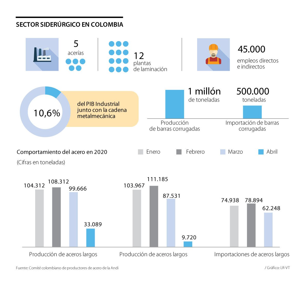 El mercado colombiano consume al año alrededor de 1,5 millones de toneladas de acero. De estas, alrededor de un millón se produce localmente y 500.000 toneladas se importan. Para 2020, se proyecta una caída en el consumo de 25%, lo que llevaría a la industria a un nivel cercano a 1,2 millones de toneladas.