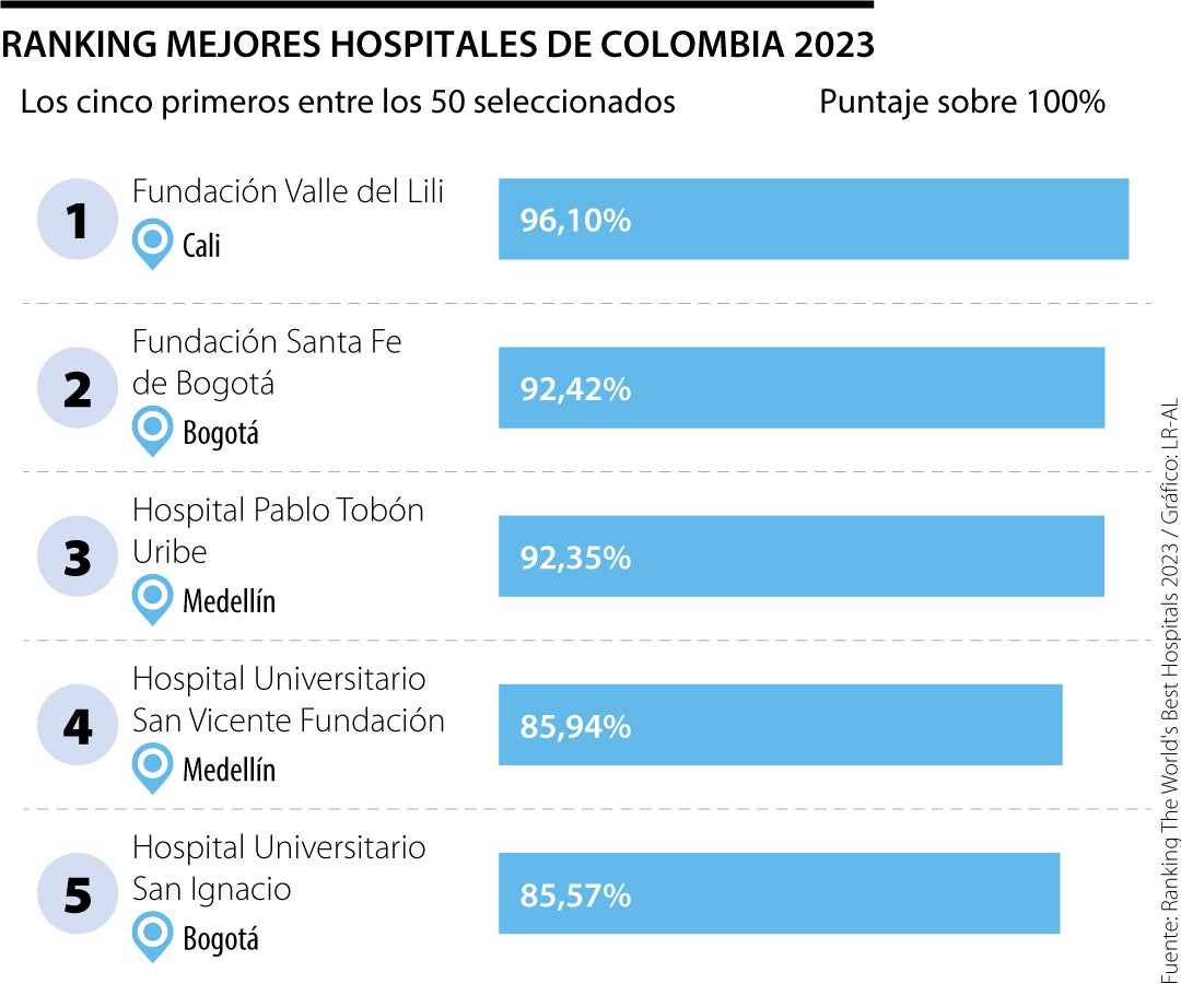 Así, el top de los centros hospitalarios colombianos está conformado por entidades privadas con la Fundación Valle de Lili en el primer lugar. También, clasificó en el ranking internacional realizado por la misma firma y compuesto por 250 instituciones de salud, al ocupar el lugar 162.