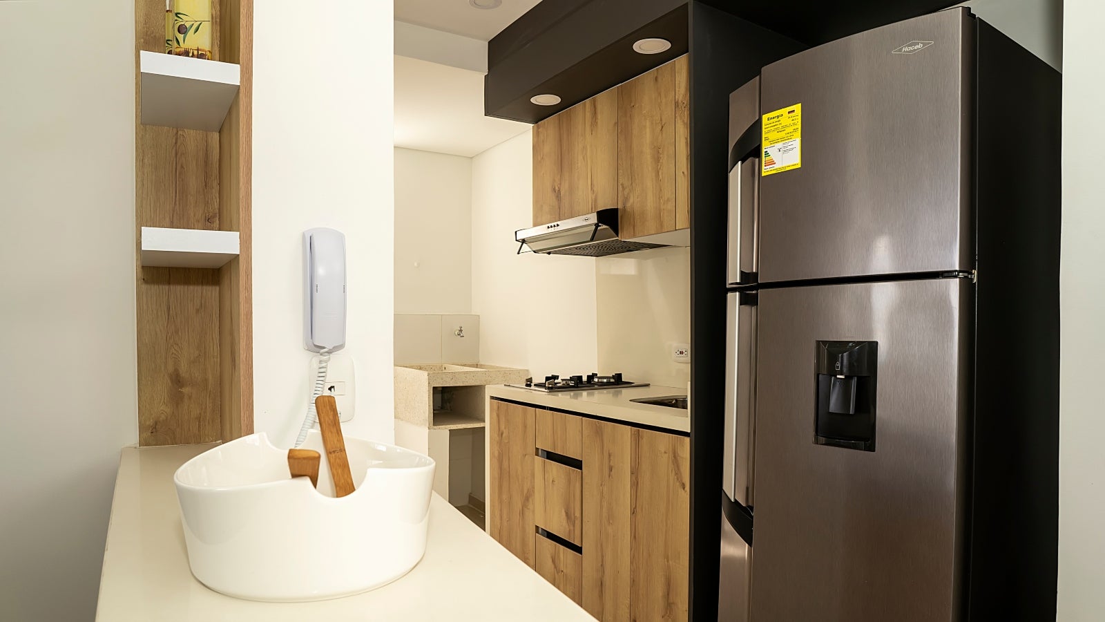 Cada uno de los apartamentos tiene un área construida de 43.3 metros cuadrados y un área privada de 39.76 metros cuadrados. Cuentan con dos habitaciones, cada una de ellas con espacio para closet, y un espacio múltiple que se puede adaptar como tercera alcoba, estudio o puede dársele algún otro uso. De igual forma, cada apartamento tiene sala-comedor, cocina y zona de oficios.