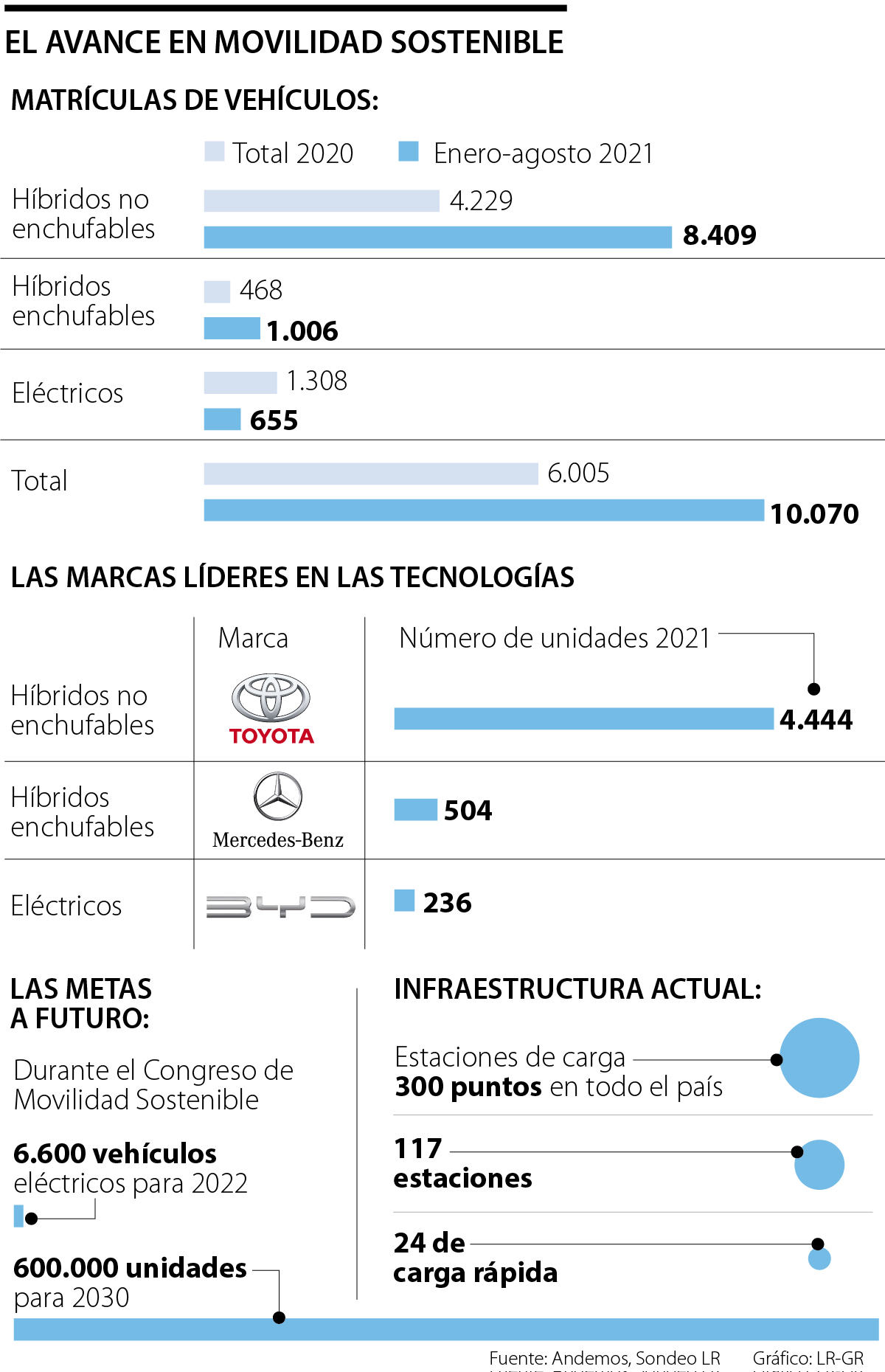 Esta semana Andemos realizó su Congreso de Movilidad Sostenible, durante el encuentro se discutió cómo avanza el país en estas categorías y cuál es el panorama a futuro. Al respecto, LR indagó qué tantos de estos vehículos han entrado al parque automotor colombiano durante 2021 y cómo ven las marcas líderes esta transición.