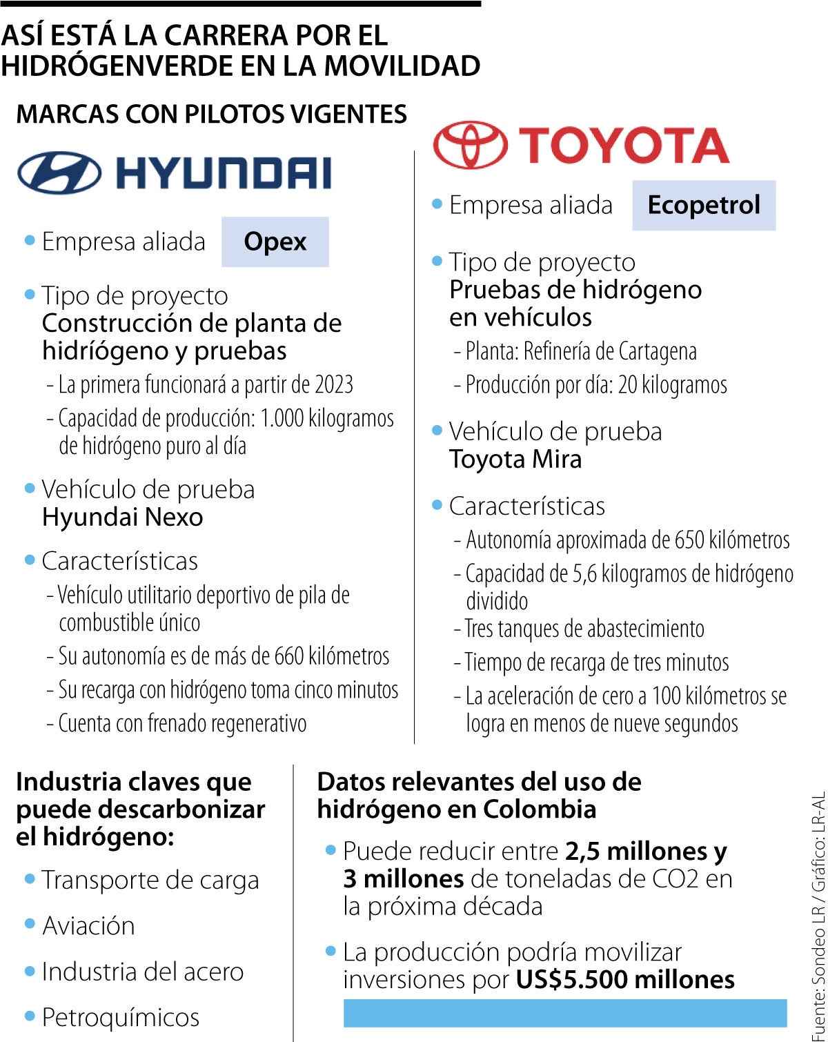 Por el lado de Toyota, esta marca se encuentra liderando un proyecto a tres años junto con Ecopetrol, para realizar pruebas de movilidad en un vehículo con hidrógeno verde.