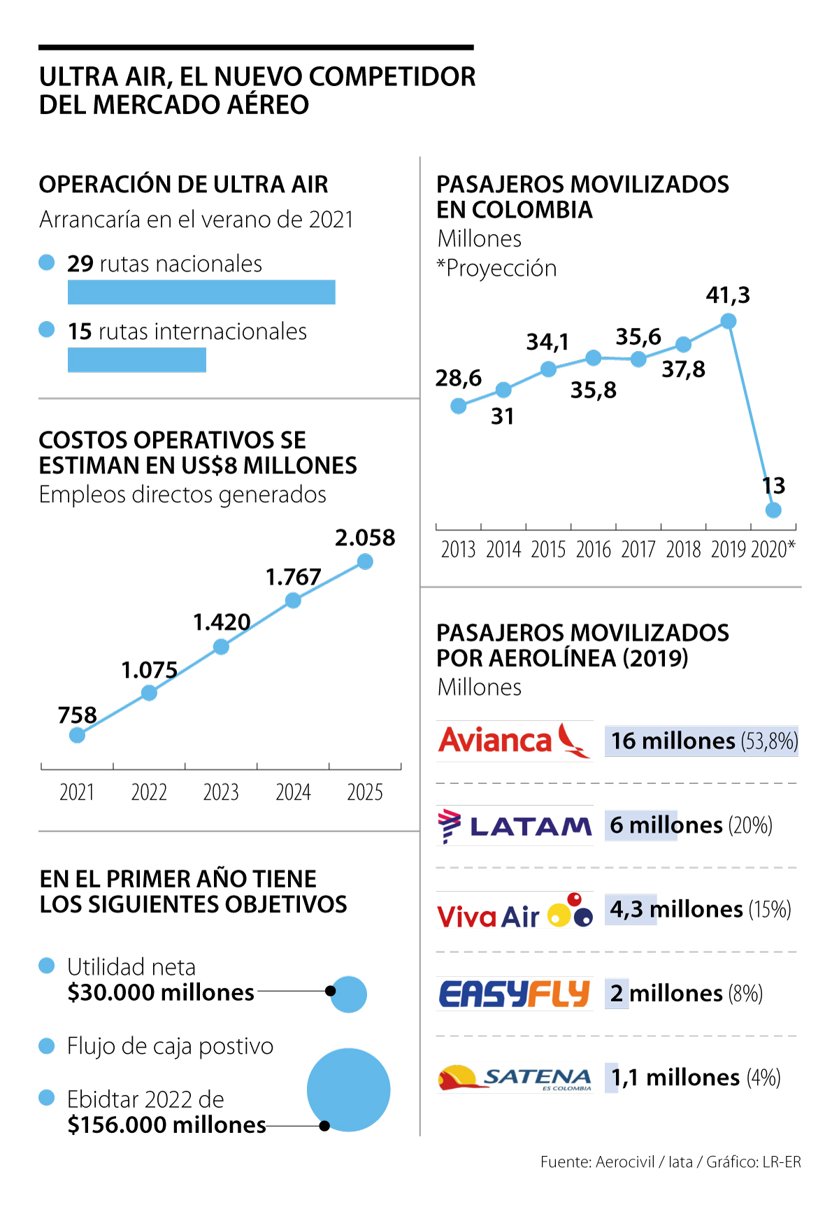 La inversión estimada para la puesta en marcha de la nueva aerolínea y costos preoperativos es de US$8 millones, cifra que está por encima de lo solicitado por la Aerocivil, que son 10.000 salarios mínimos legales mensuales vigentes.