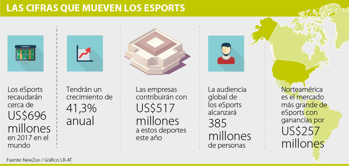 Los deportes electrónicos, más conocidos como eSports, cada vez toman más fuerza en el mundo. Según la empresa especializada en el mercado de los videojuegos, Newzoo, los eSports recaudarán US$696 millones en el mundo este año y tendrán un crecimiento de 41,3% respecto a 2016.