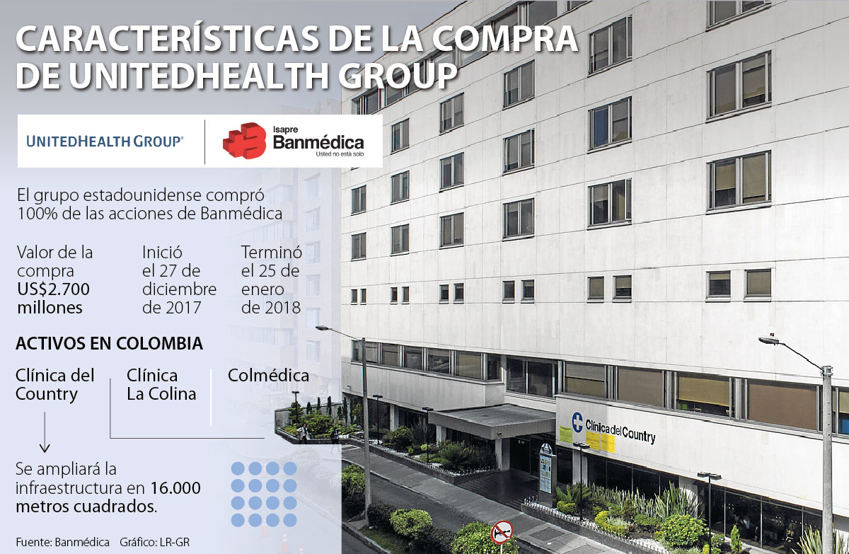 El efecto de UnitedHealth sobre Banmédica, de inmediato se tradujo en un traspaso de los activos que posee el grupo no solo en Chile, sino también en Perú y Colombia. En el caso local, la empresa chilena Banmédica es la dueña de la firma de medicina prepagada Colmédica, y socia de las clínicas de La Colina y El Country, ambas en Bogotá.