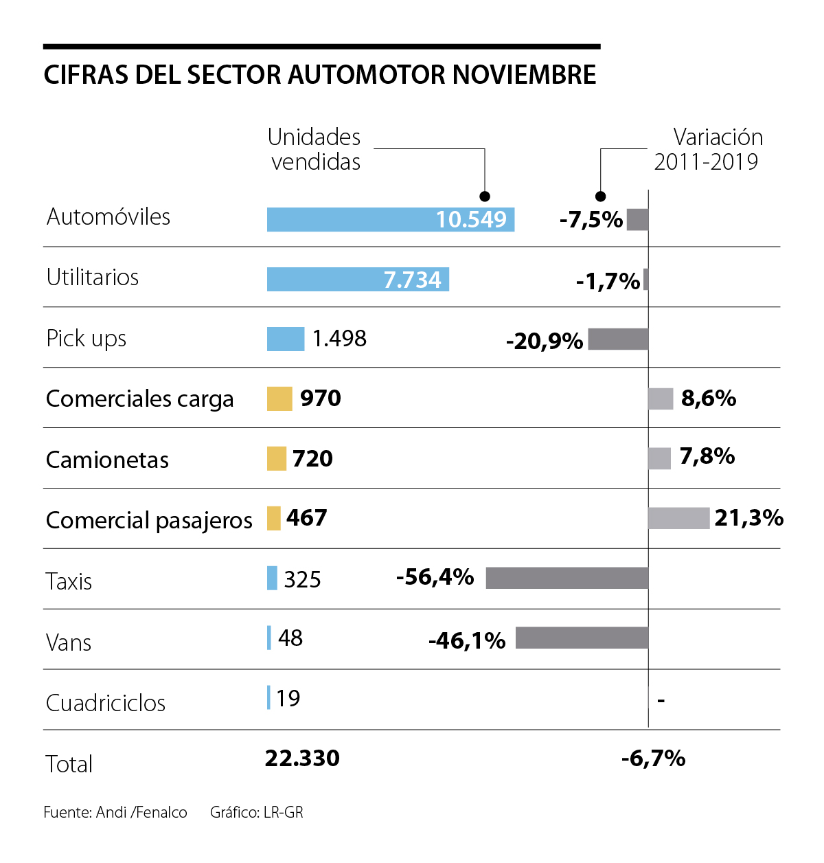 La información de matrículas suministrada por el Registro Único Nacional de Tránsito (Runt), la Federación Nacional de Comerciantes (Fenalco) y la Asociación Nacional de Empresarios de Colombia (Andi) reveló que para noviembre se matricularon 22.330 vehículos nuevos en el país, 6,7% menos que el mismo mes del año pasado. En lo corrido del año se registraron 161.537 automotores nuevos en las calles, lo representa una caída del mercado de 30,6% frente al año pasado.