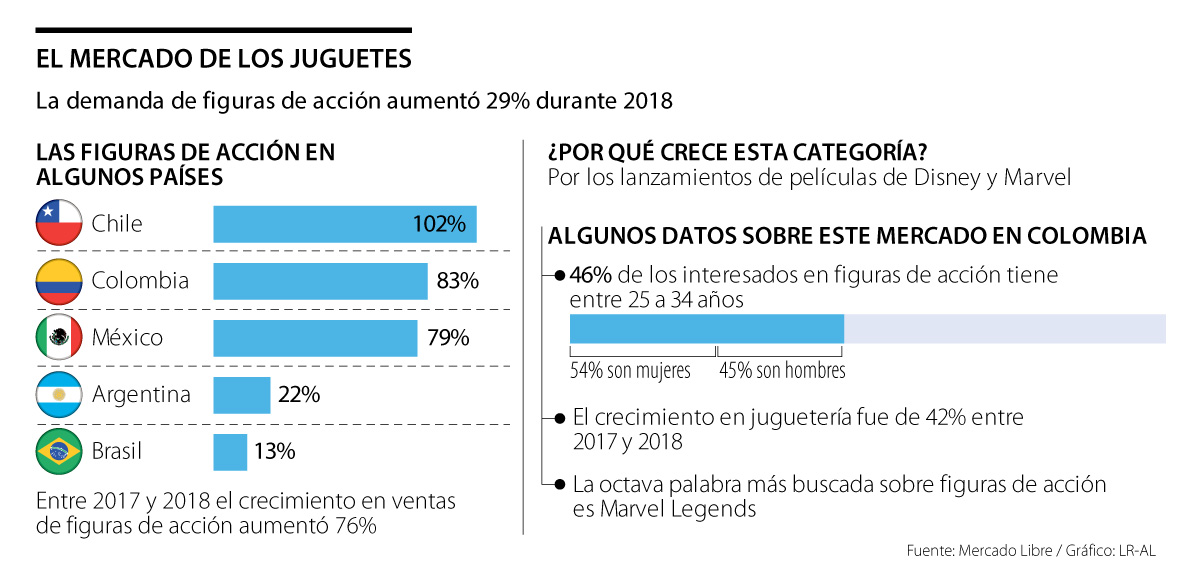 “Al analizar el año posterior al estreno de Avengers: Infinity War en 2018, se observa que la demanda de ‘figuras de acción’ creció más que el promedio de la venta de juguetes dentro de Mercado Libre. Ejemplo, en Chile las ventas de esta figura aumentaron 285% vs. 76% de la categoría de juguetes en general”, dijo Mercado Libre. La demanda aumentó 29% en 18 países durante 2018.