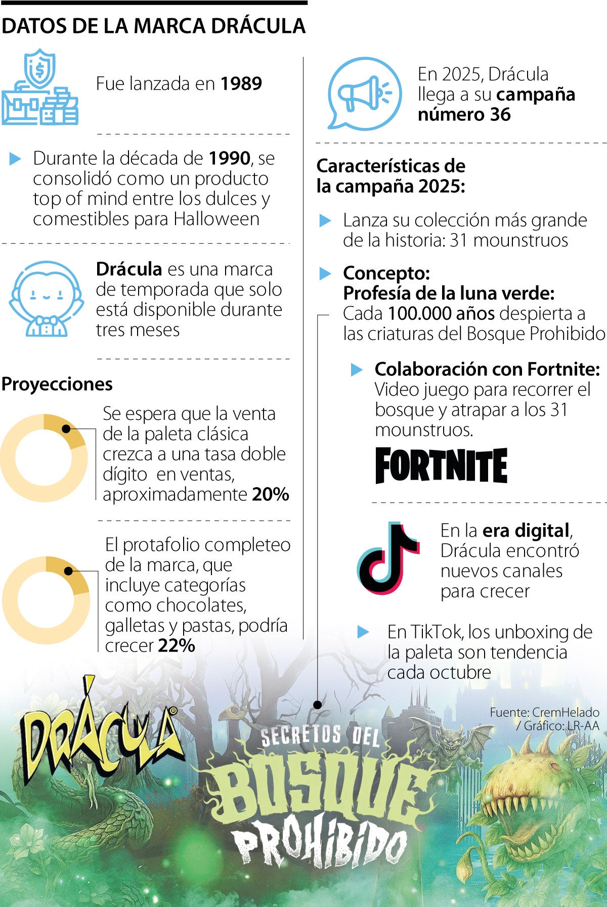 “Buscamos sorprender a nuestros consumidores con innovación y experiencias únicas. Este es un año histórico: no solo ampliamos el portafolio, sino que construimos un universo de historias que hacen vibrar tanto a niños como a adultos”, dijo Luisa Fernanda Carrizosa, gerente del negocio de Helados de Grupo Nutresa. “La paleta sigue siendo el corazón de la temporada de Halloween, pero ahora también es la puerta de entrada a un mundo más grande. Además, este año se va a romper un récord histórico con las ventas del portafolio de Drácula, con crecimiento a doble dígito, es una marca que trasciende generaciones y eso nos inspira año a año”, añadió.