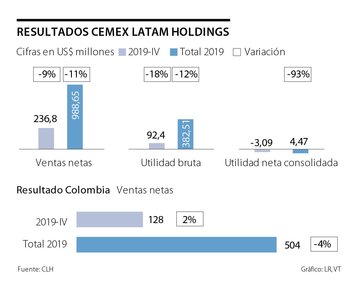 Cemex empezó la temporada de presentación de resultados empresariales, y de acuerdo con lo publicado por la empresa, en 2019 sus ventas presentaron una caída de 11%, al llegar a los US$988,65 millones. En el cuarto trimestre, la caída en el indicador fue de 9%, ya que sus ventas netas alcanzaron los US$236,82 millones.