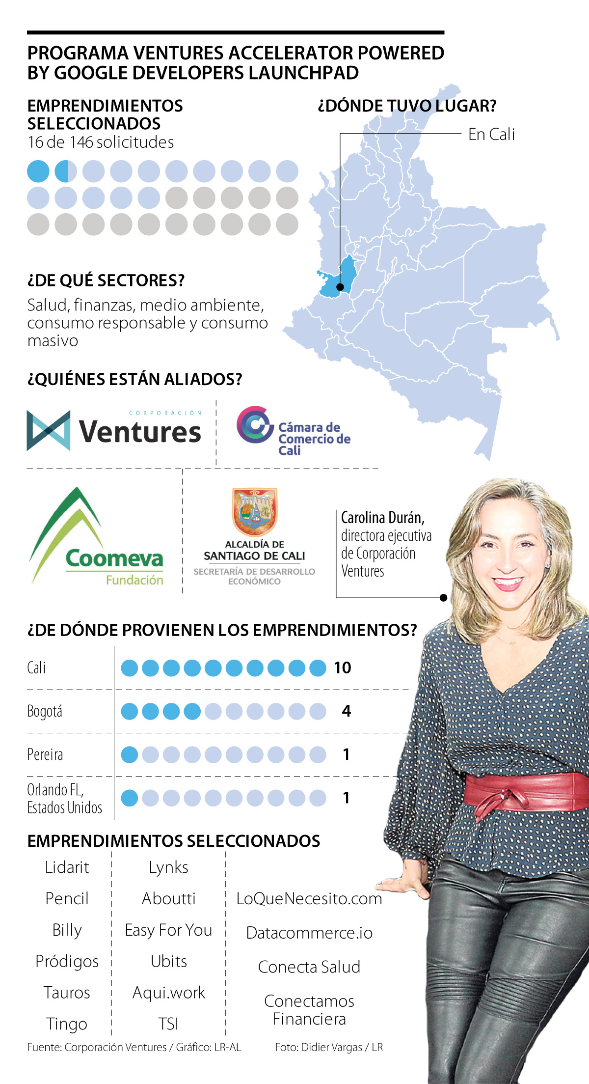 Ayer se conocieron los 16 emprendimientos de base tecnológica que harán parte de la segunda edición de ‘Ventures Accelerator Powered by Google Developers Launchpad’, un programa creado para impulsar el crecimiento de las nuevas empresas que están naciendo en diferentes regiones del país y en el mundo.
