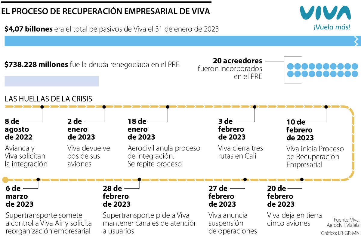 En cuanto al proceso de reorganización empresarial, vale la pena recordar, que la compañía se había adherido a un Proceso de Recuperación Empresarial (PRE), en el que decidió hacer un acuerdo con 18% de sus acreedores. Sin embargo, según el abogado Diego Márquez Arango, director en MQA Abogado, con la solicitud de reorganización lo que se buscaría es que se negocien todos los pasivos que tiene Viva y que tal negociación se de en un escenario en el que la Supersociedades funcionaría como un juez. No obstante, señaló que la medida abriría una puerta para decretar la inviabilidad de la compañía aérea.
