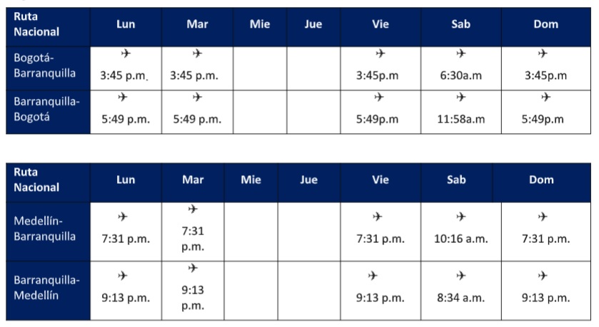 La oferta promocional de la compañía estará disponible desde $90.000 por trayecto para los vuelos que van desde Bogotá hacia Barranquilla con tasas e impuestos incluidos. Los términos y condiciones se podrán consultar a través de su sitio web.
