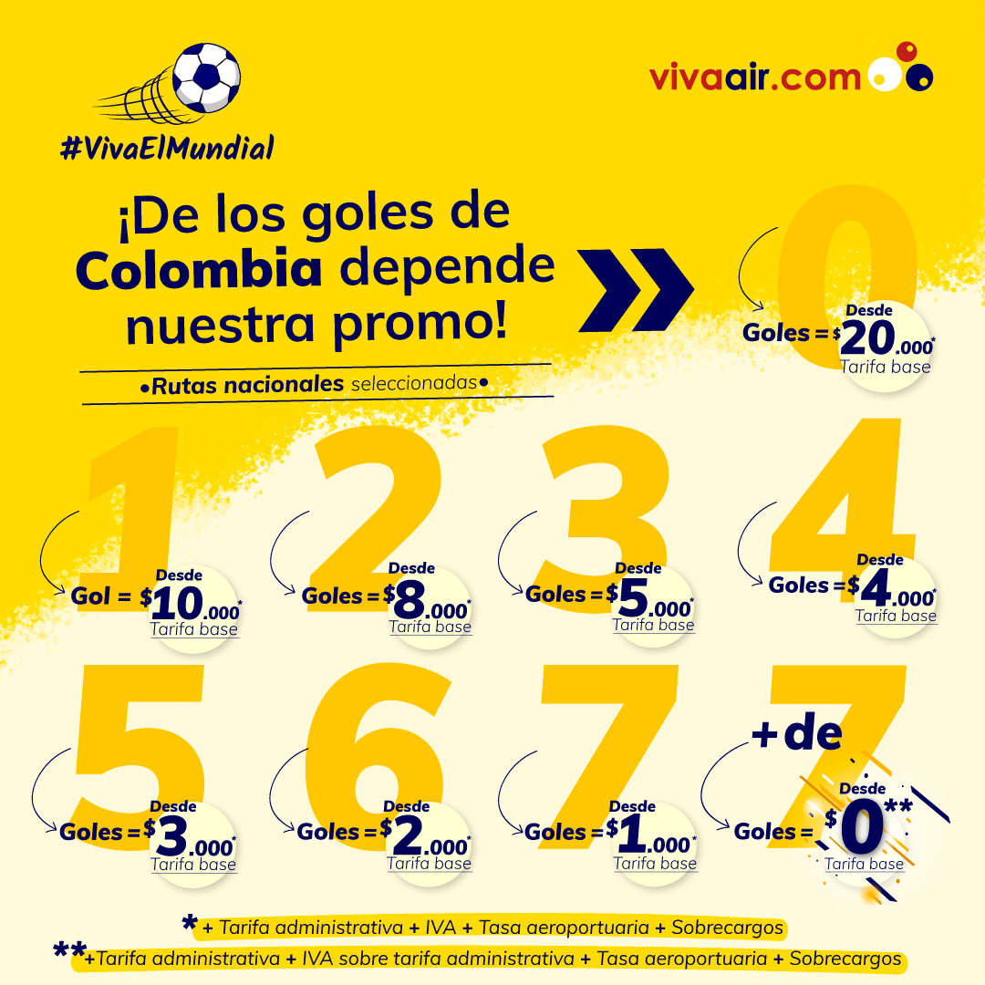 Adicionalmente, la aerolínea ofrecerá promociones especiales de acuerdo al número de goles que haga la selección nacional durante los partidos. La dinámica es sencilla: a más goles hechos, la tarifa base irá disminuyendo hasta llegar a $0, sin incluir tasas e impuestos.