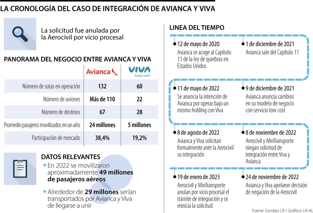 El recurso de apelación que Avianca y Viva interpusieron el 24 de noviembre de 2022, ante la Aeronáutica Civil, contra la decisión de negación de integración entre ambas aerolíneas, fue anulada. ¿La razón?, por un error procedimental en el cual habría incurrido la Aerocivil, que es haber tramitado, según explicaron, la radicación por el régimen ordinario, y no por el especial para este tipo de casos, estipulado en la Ley de libre competencia de Colombia.