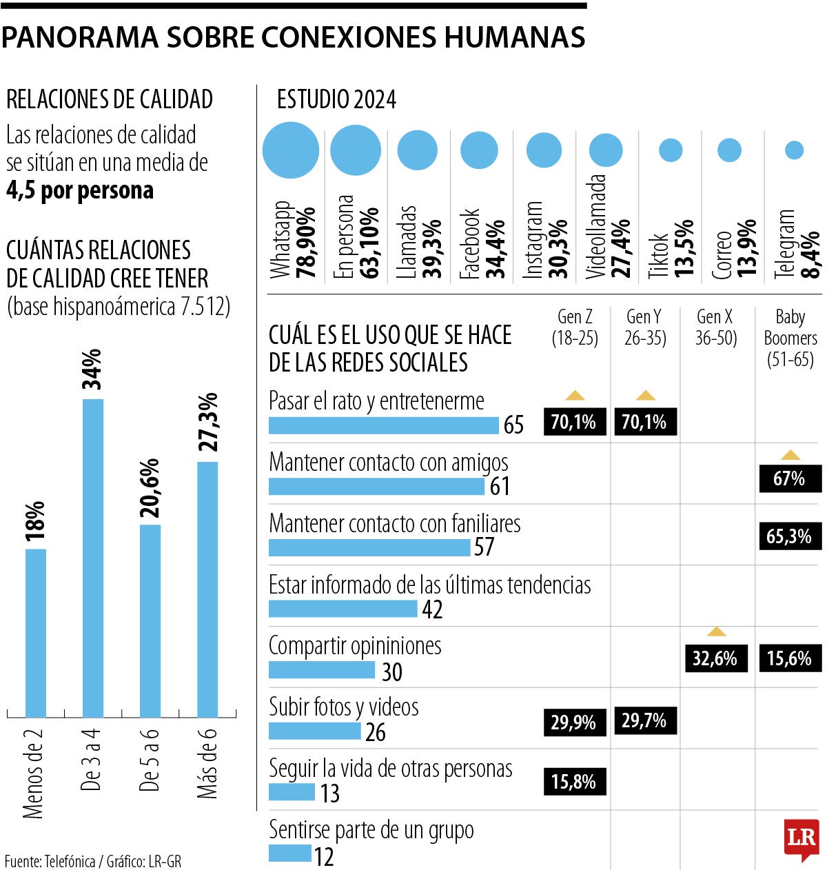 El informe también resalta que las relaciones personales siguen siendo una prioridad para 68% de los encuestados en Hispanoamérica. La confianza se identifica como el atributo más valorado en las relaciones de calidad, seguido de cerca por el respeto y la lealtad, elementos facilitados por plataformas mencionadas anteriormente.