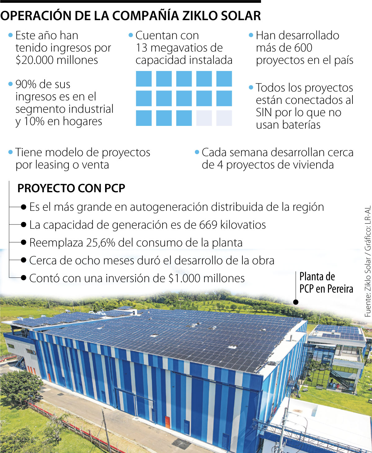Las empresas cada vez están apostando más por el uso de energías renovables no convencionales. Un ejemplo de esto es PCP (Partes y Complementos Plásticos) que inaugurará en sus instalaciones un sistema de autogeneración solar. La responsable de llevar a cabo esta obra es Ziklo Solar, una empresa paisa que, así como esta obra en Pereira, cuenta con cerca de 600 proyectos en el país.