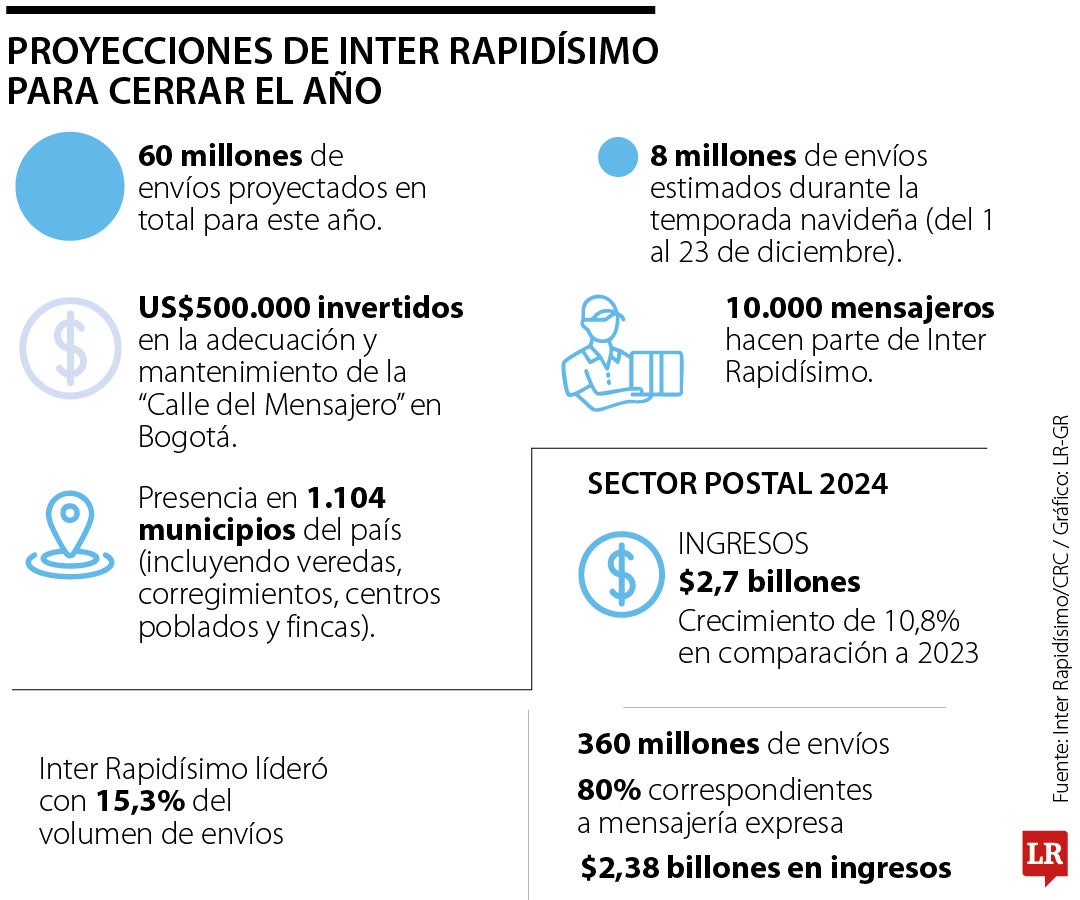 Adicionalmente, durante el año anterior se movilizaron 360 millones de envíos, 80% correspondientes a mensajería expresa, 13,5% a giros postales y 6,5% servicio de correo