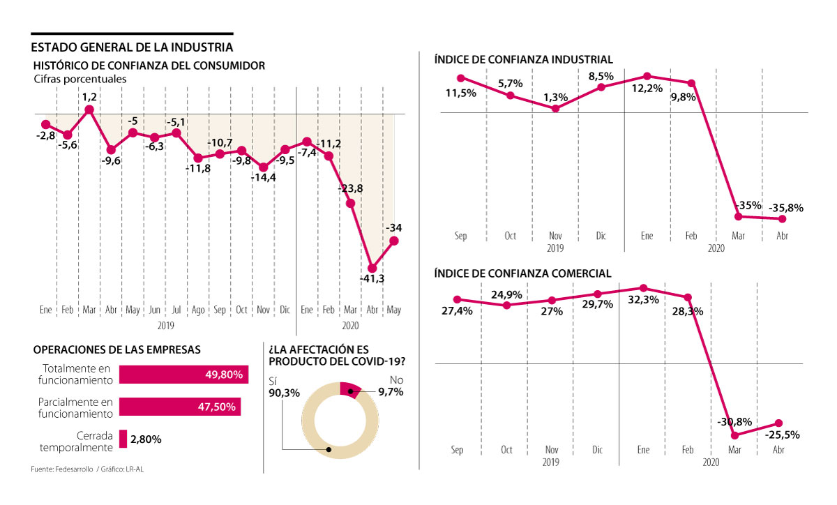 En apoyo a esta idea, uno de esos ejemplos fue cuando Fedesarrollo entregó los resultados de la Encuesta de Opinión Empresarial de mayo, en la que se registró un mejor desempeño en comparación con abril, pues se recuperaron tanto el Índice de Confianza Comercial (Icco) como en el Índice de Confianza Industrial (ICI). Sin dejar de lado que ambos continúan en números rojos por el impacto derivado del covid-19 sobre la economía.