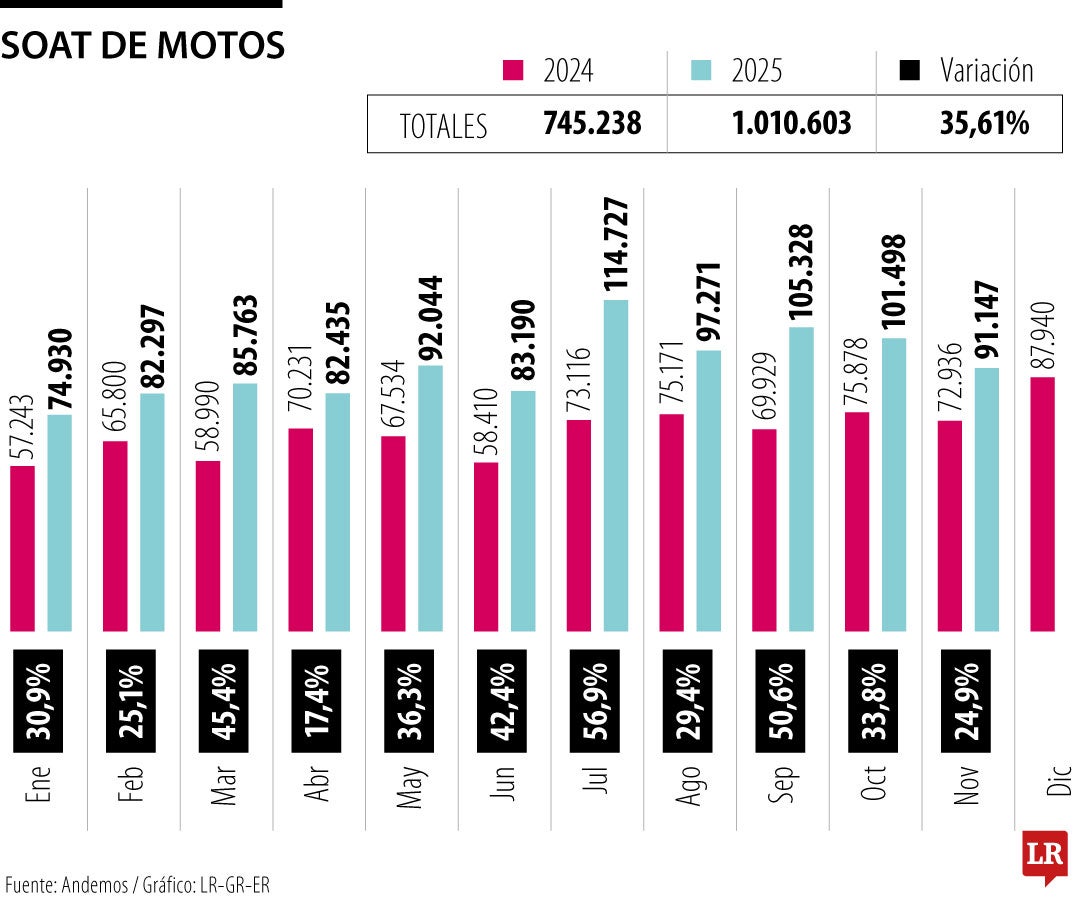 Los meses donde hubo mayor crecimiento en venta de seguros obligatorios durante 2025 fueron julio, septiembre y marzo; siendo el séptimo mes del año el de más aumento
