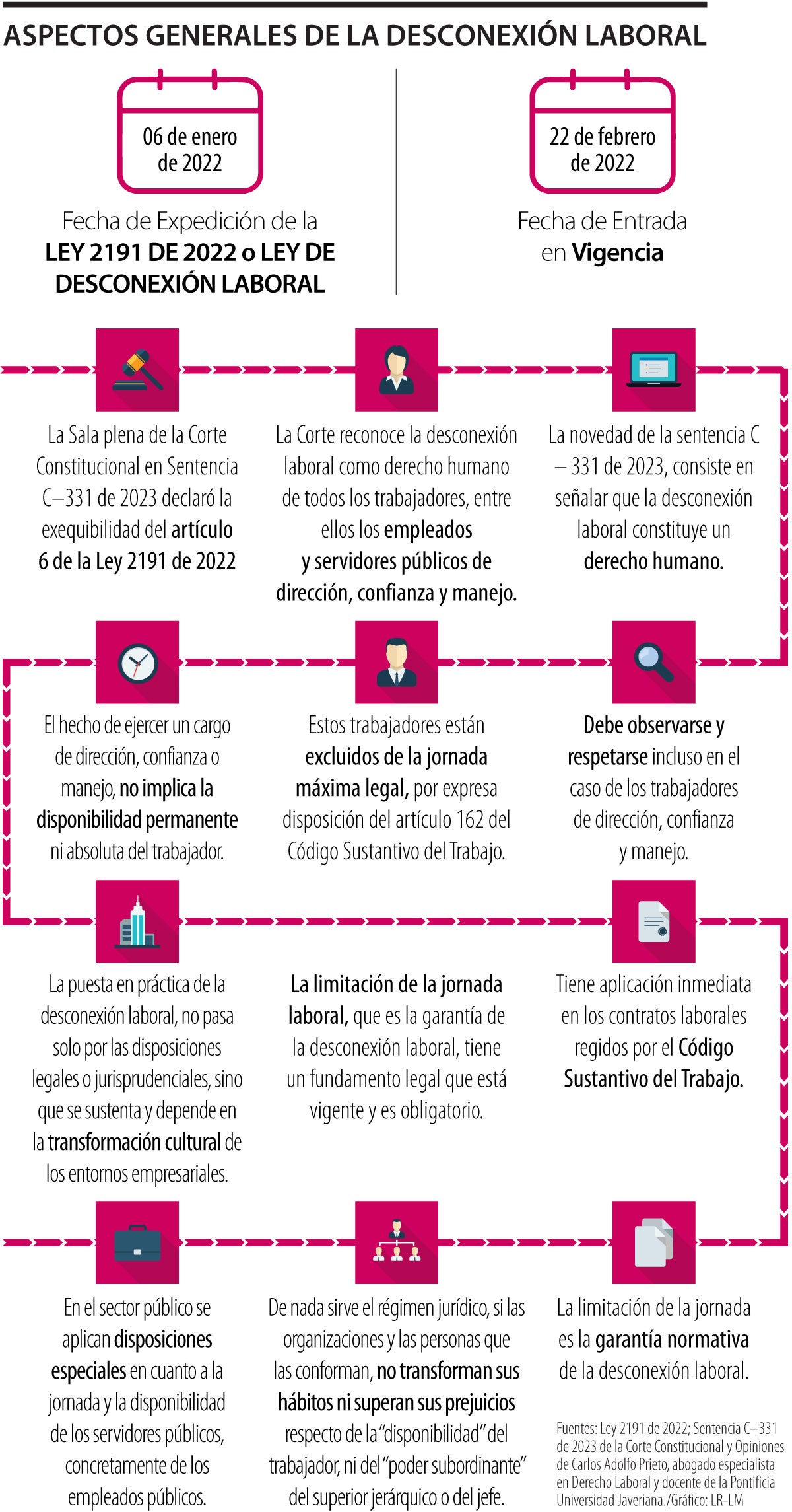 Carlos Adolfo Prieto, abogado especialista en Derecho Laboral y docente de la Pontificia Universidad Javeriana, explicó que la desconexión es necesaria y fundamental, pues permite que las personas construyan espacios de vida social más allá de la mera actividad laboral.