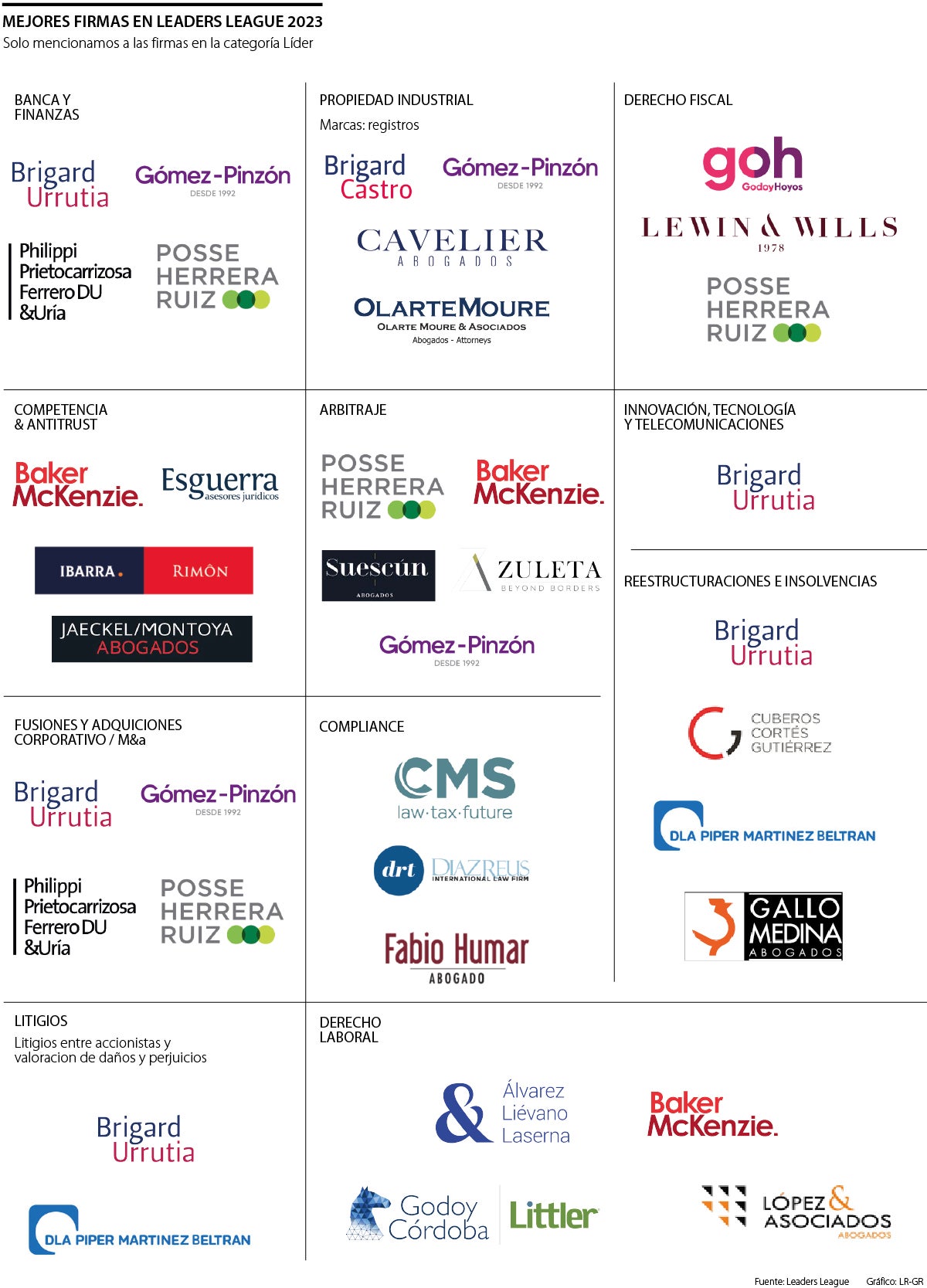 El ranking de Leaders League dio a conocer las firmas más destacadas por área de práctica para este año. El objetivo es clasificar, por categorías, el desempeño de los bufetes más importantes del país. Líder, Excelente, Altamente recomendado y Recomendado son los niveles de reconocimiento que se tienen en cuenta para distinguir a las firmas.