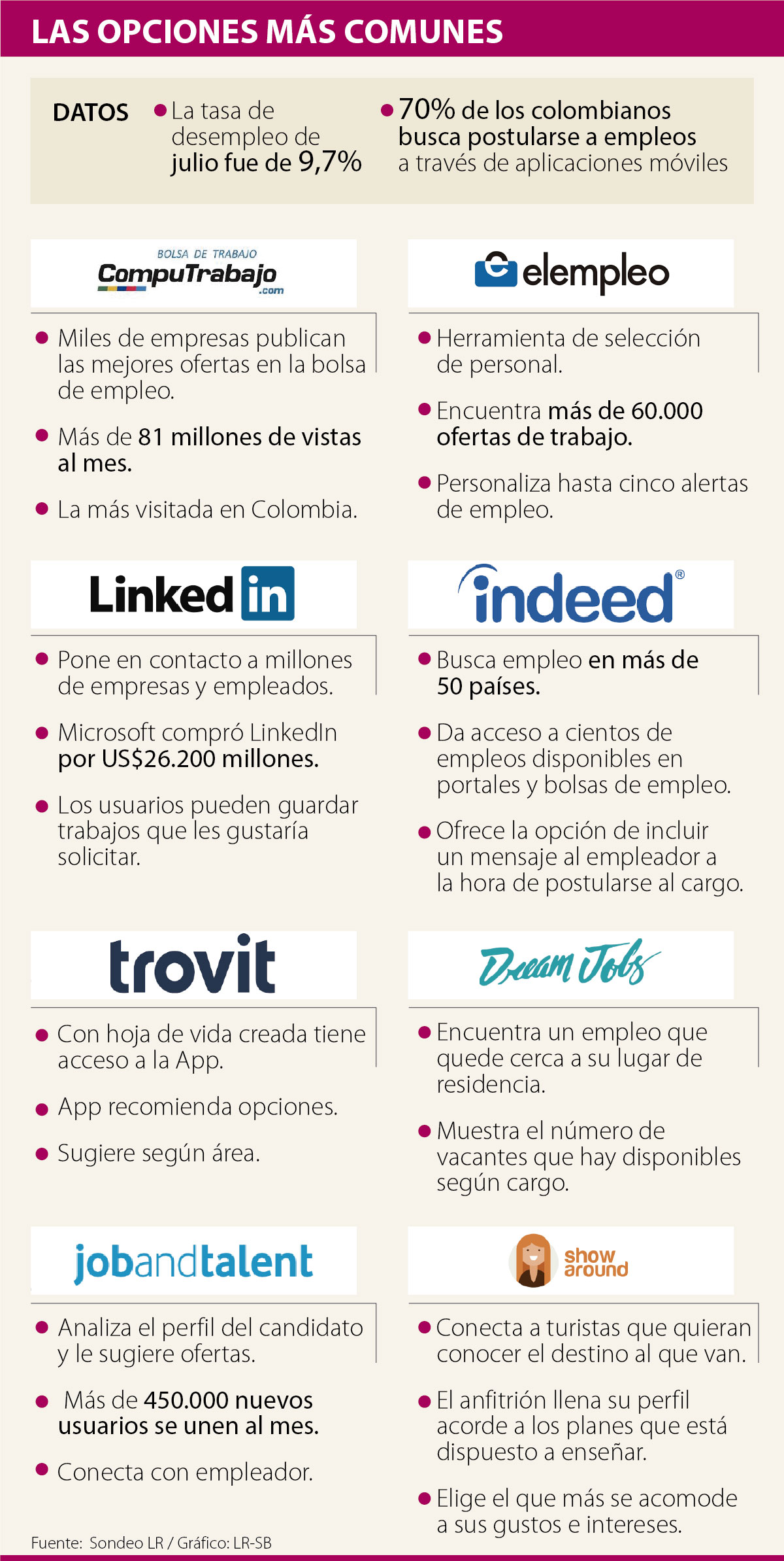 Según ManpowerGroup Solutions, firma especializada en reclutamiento de talentos, sobre las preferencias tecnológicas del candidato en su búsqueda laboral, 70% de los colombianos busca postularse a empleos a través de aplicaciones móviles.