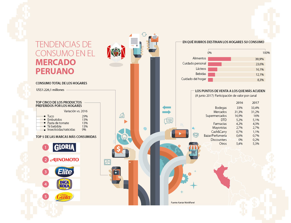 Al cierre de 2016, Fidel la Riva, quien en ese momento era country manager de Kantar WorldPanel en Perú, aseguró que el consumo en 2017 cambiaría frente al año anterior, previendo que la ausencia de un fenómeno de El Niño haría que el gasto en alimentos se recuperara, pues allí se concentra 60% del consumo total de las familias peruanas.