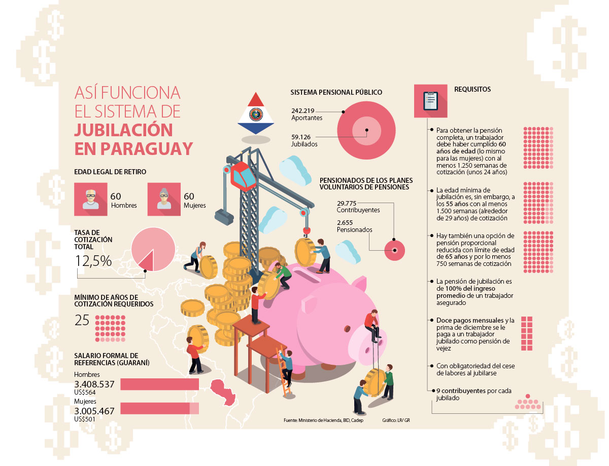 En este sentido, el temor de los trabajadores y población en general era el cambio en las normas ya establecidas para recibir pensión y jubilación. En Paraguay, para obtener la pensión completa, un trabajador debe haber cumplido 60 años de edad (lo mismo para las mujeres) con al menos 1.250 semanas de cotización (unos 24 años). La edad mínima de jubilación es, sin embargo, a los 55 años con al menos 1.500 semanas (alrededor de 29 años) de cotización. Un requisito con obligatoriedad es el cese de labores al jubilarse.