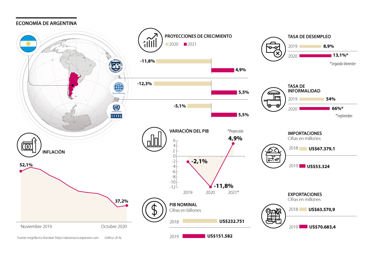 La incertidumbre por la pandemia no termina, pues aunque muchos pensaban que ya había pasado lo peor, nadie sabe si habrá nuevos picos próximamente que obliguen a nuevas restricciones como se está viviendo en Alemania. Aún así, los gobierno buscan la manera de reactivar su economía. En Argentina prevén cerrar el año con una inversión aproximada de 7% de su Producto Interno Bruto (PIB) en políticas de contención social para mitigar el impacto de la pandemia, según información publicada por Santiago Cafiero, jefe del Gabinete de Ministros.