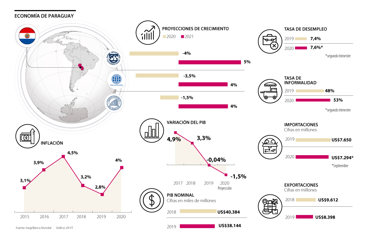 Para los expertos, Paraguay tiene un marco macroeconómico sólido basado en reglas fiscales, metas de inflación y un régimen cambiario flexible. Con el historial de una política macroeconómica prudente en la última década, una deuda pública baja y reservas de divisas adecuadas, se espera que las políticas macroeconómicas del presidente Mario Abdo Benítez, y las medidas de respuesta a la crisis, sean efectivas para absorber una parte del shock ocasionado por el covid.